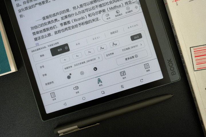 这次屏幕升级是我比较期待的,实测文石Tab10C Pro的阅读体验表现出色,大尺寸可以单页显示更多内容。同时字迹显示方面也十分清晰细腻,边缘的细节也不发虚,锯齿控制都出色。即使小字号放大,也能有不错的清晰度表现。整体观看背景干净,画面纯净清透,很适合长时间连续阅读。对比上一代产品,显示效果更白更清透,阅读体验提升明显。