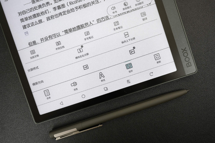 使用文石Tab10C Pro的双开功能也能轻松实现一心两用,支持当前文档、不同文档、手写笔记、文本笔记、翻译等在内的多种双开操作。