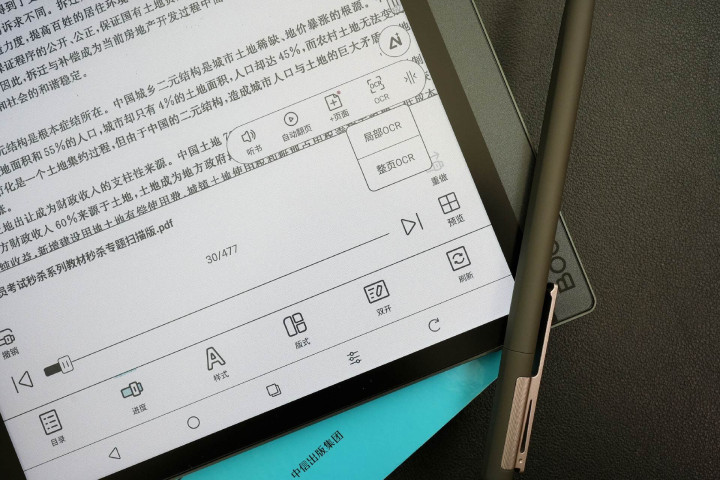 一些扫描版PDF文档效果欠佳,做一些阅读操作就没有普通的墨水屏这么方便。这个时候我们就可以借助OCR功能来处理,文石的OCR功能也是支持局部和整页两种操作方式可选。