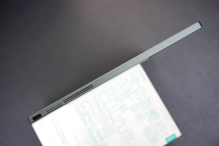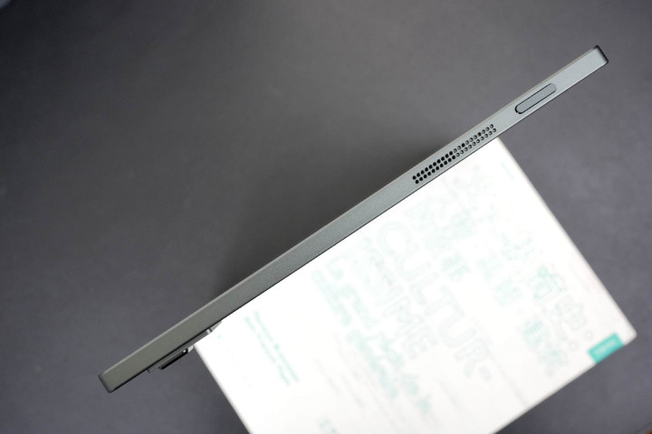 主要的数据接口设计在机身侧边框的顶部和底部。底部和顶部分别设计有扬声器,顶部还设计有电源键,底部则包含用于充电和数据传输的USB-C口以及TF卡扩展插槽。